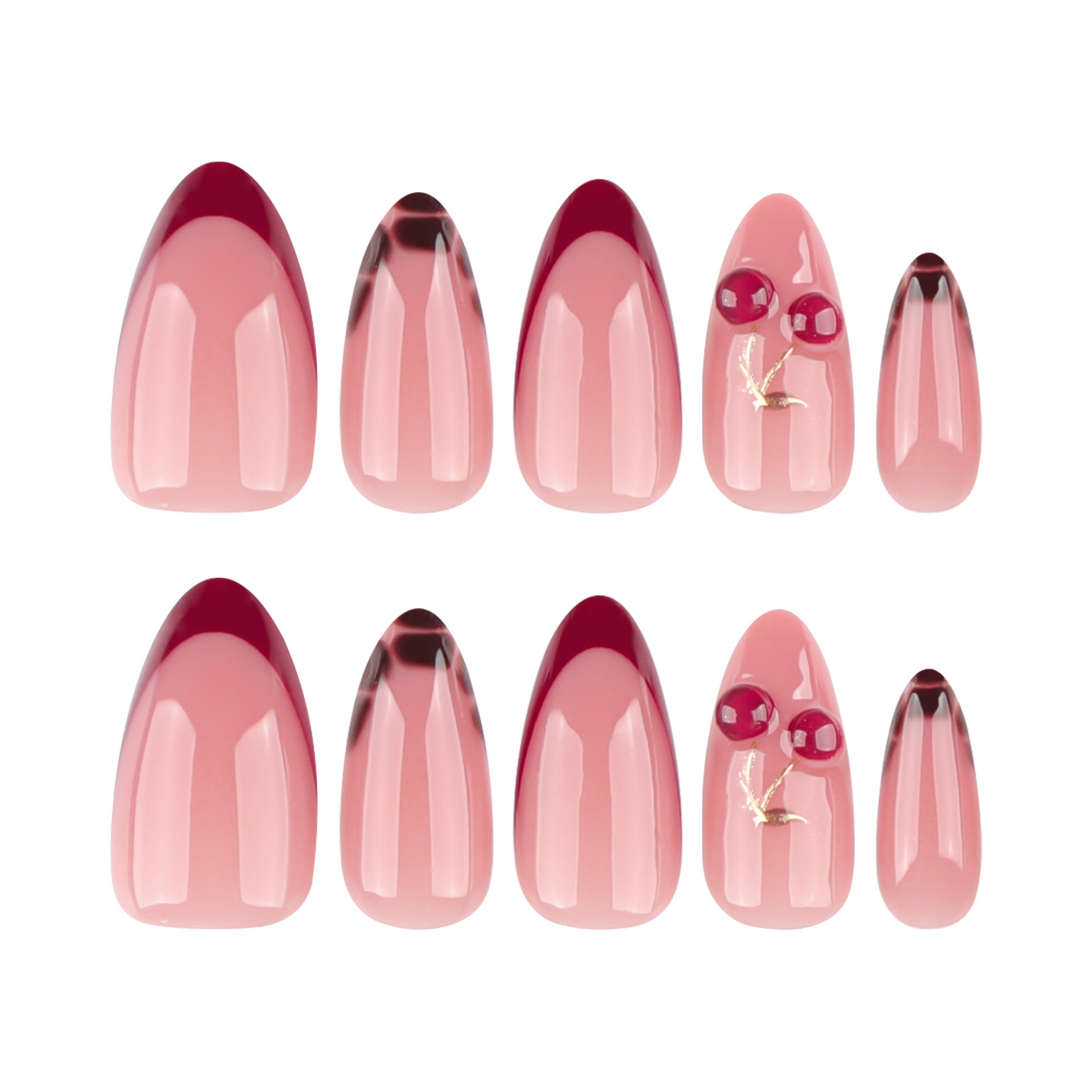 - Design: Red French tips, leopard details, and 3D cherry fruit embellishments