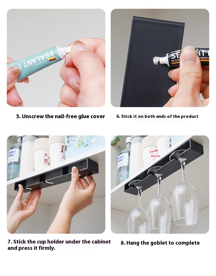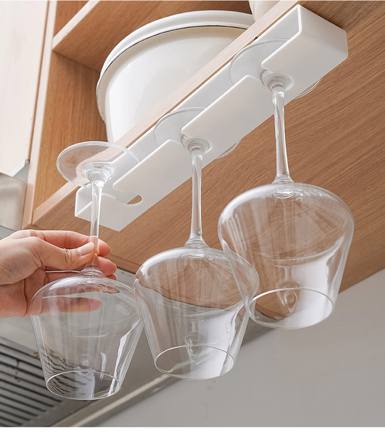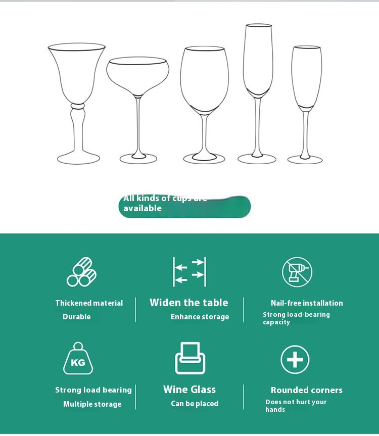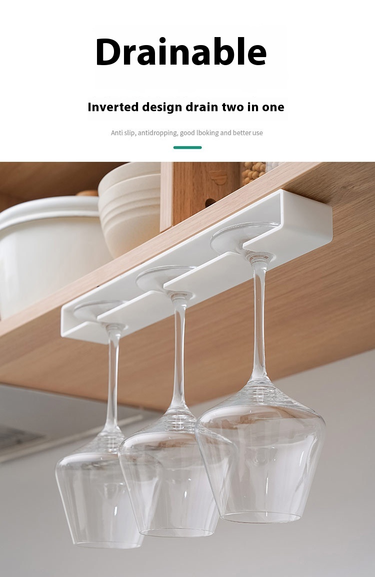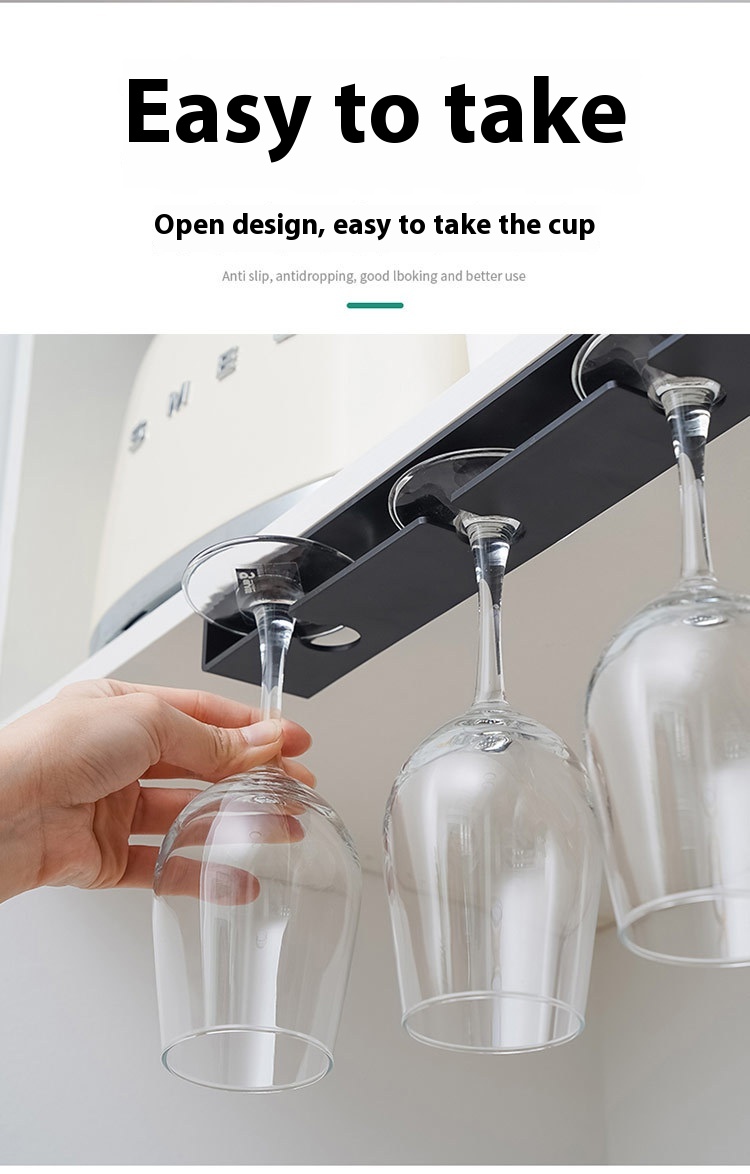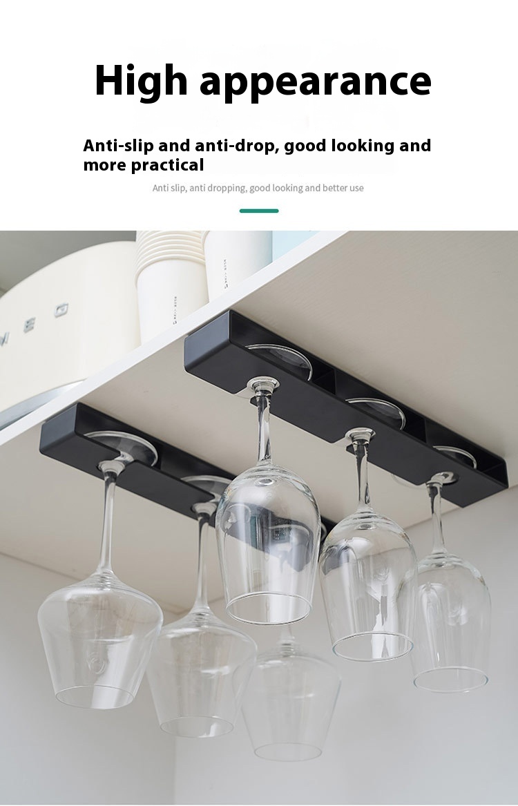 Designed to mount securely under shelves or cabinets, this hanging wine glass holder efficiently utilizes unused vertical space while keeping your glasses safe from damage. It accommodates various glass types including wine, martini, champagne, and cocktail glasses , making it a versatile addition to any wine lover’s setup. The anti-scratch, rust-resistant finish ensures long-lasting performance and a polished look.