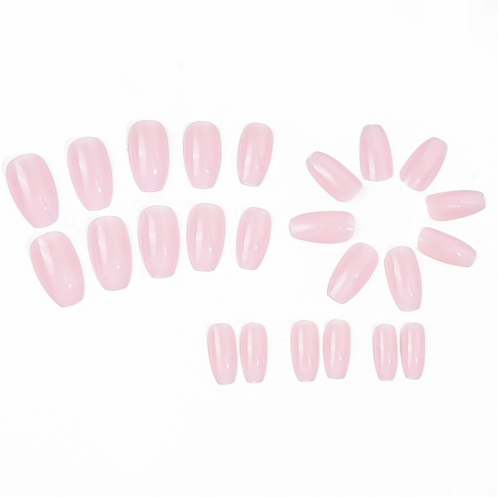 Made from high-quality ABS resin, these press-on nails are lightweight, durable, and shaped to provide a perfect fit and natural curvature. The soft pink gradient gives a translucent effect that flatters every skin tone, offering versatility for both daily wear and special events. Easy to apply and reusable, they provide an instant salon look without the cost or time commitment.
