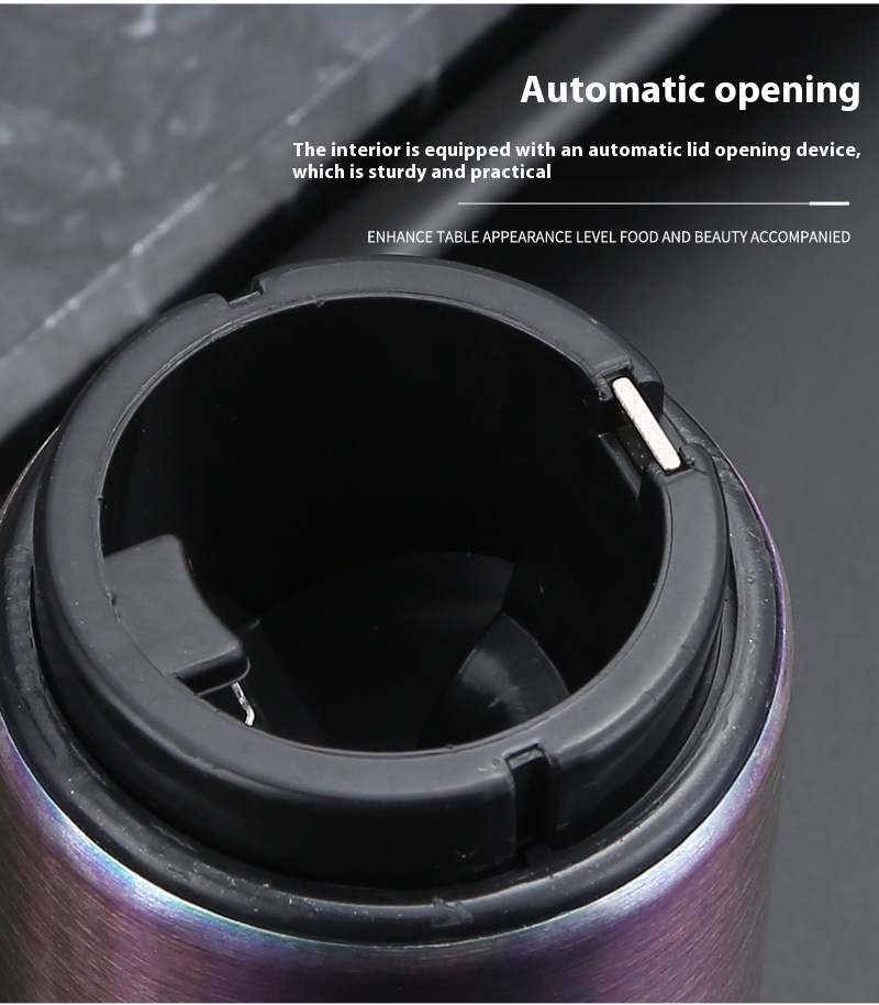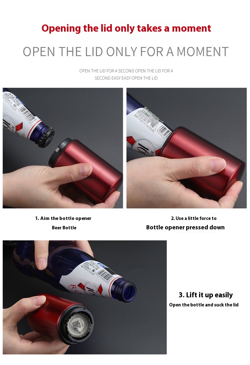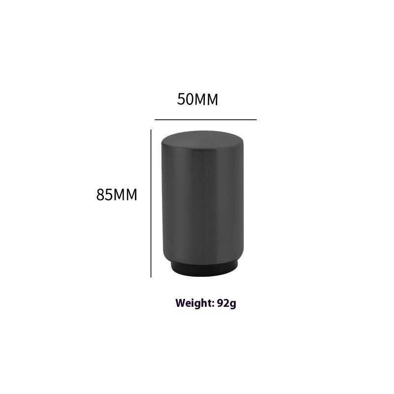 Design: Modern cylindrical cap with metallic finish and built-in air seal