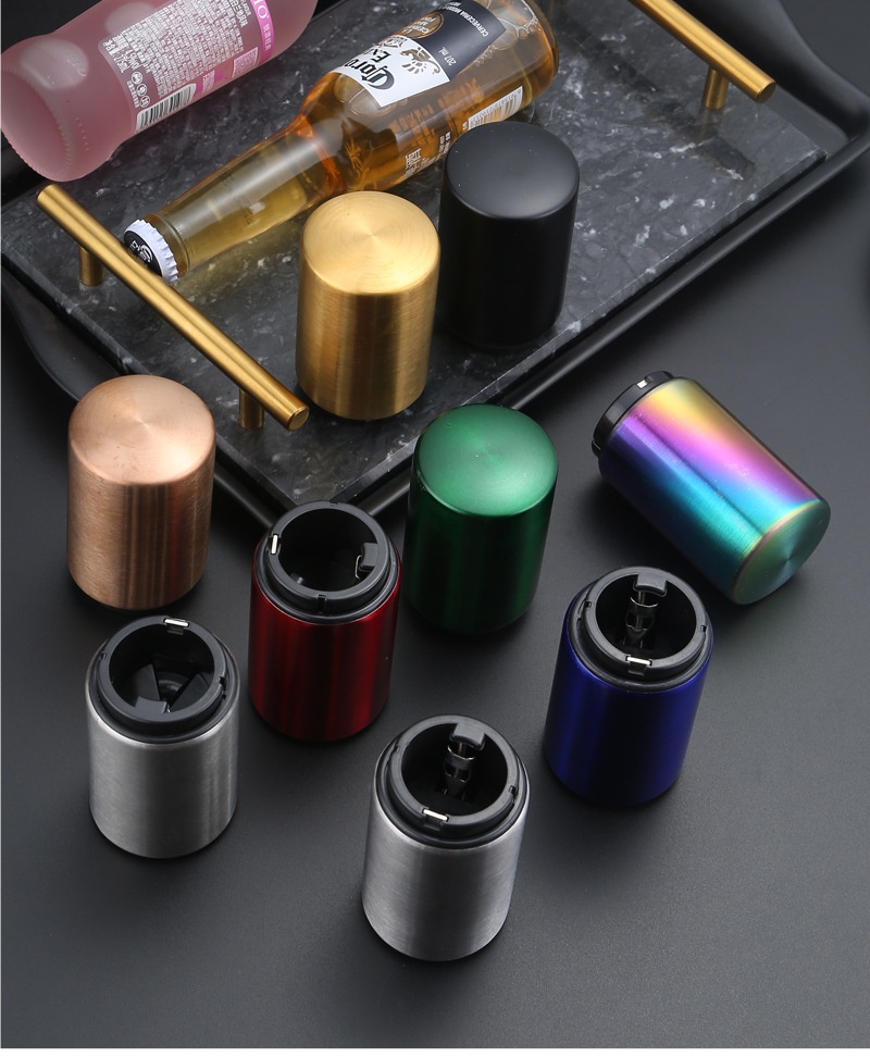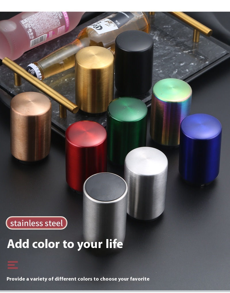 Made from high-quality stainless steel with a durable, food-grade silicone inner seal, this wine stopper combines functionality and luxury. Its automatic vacuum mechanism activates with a simple push, making it quick and easy to use for any standard wine bottle. Available in a range of elegant metallic finishes — including silver, gold, red, black, green, purple, and iridescent chrome — this accessory adds a sophisticated touch to any bar or kitchen.
